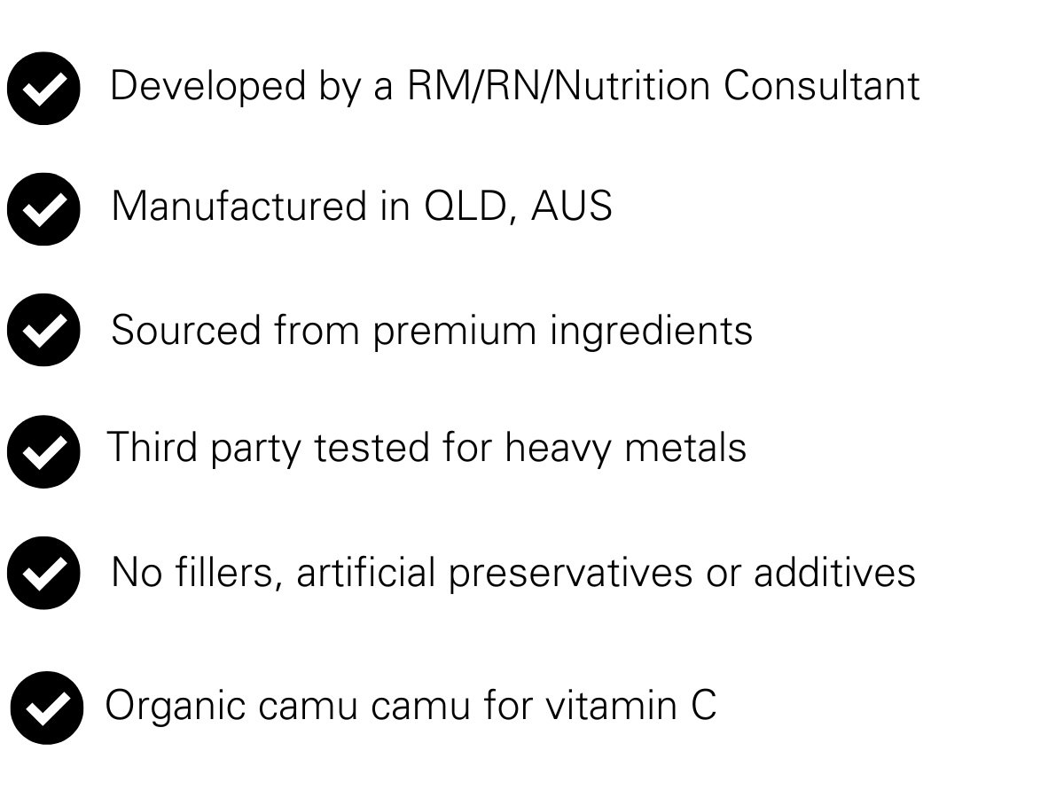 Manufactured in Qld Australia at a facility certified by both the TGA and GMP standards.