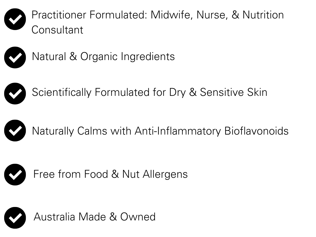Natural, nut-free, and food allergen-free formulations made with premium, purpose-driven ingredients - formulated to support sensitive skin at every age and stage.